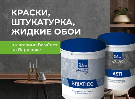 Теперь в магазине ВамСвет на Варшавском шоссе можно купить не только освещение, но и краску, штукатурку, жидкие обои от SILK PLASTER – завода по производству современных декоративных покрытий.