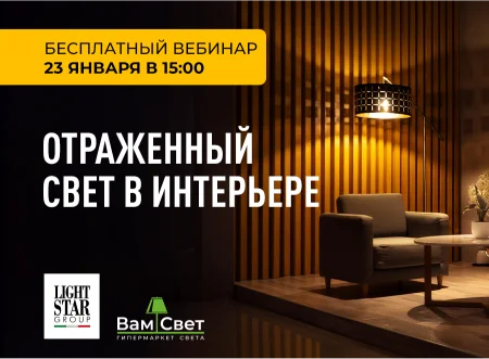 Не пропустите бесплатный вебинар, на котором спикер от бренда LightStar расскажет, как грамотно работать с отраженным светом и создавать с ним эффектные и функциональные световые сценарии.