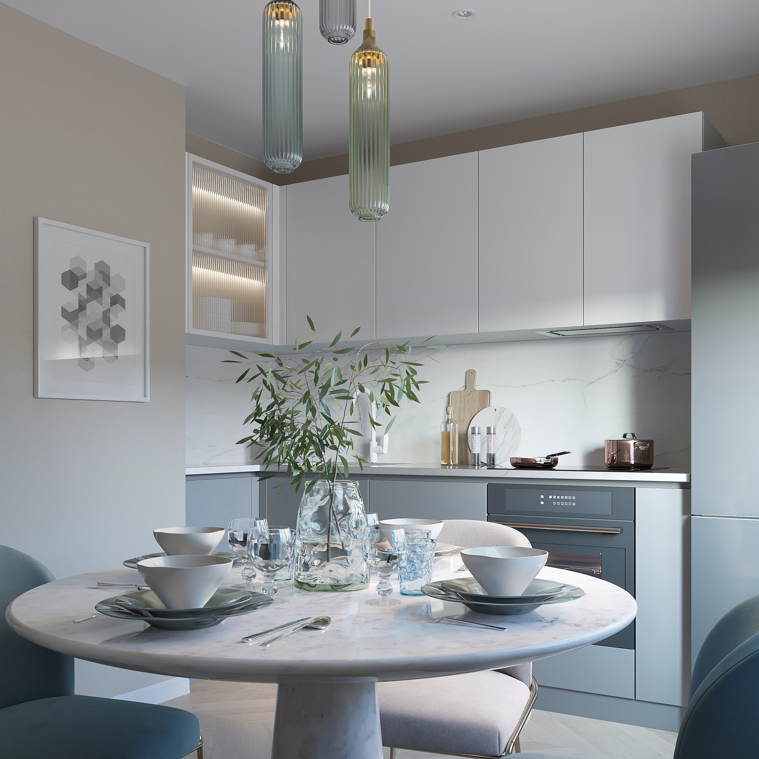 Кухня серо голубая