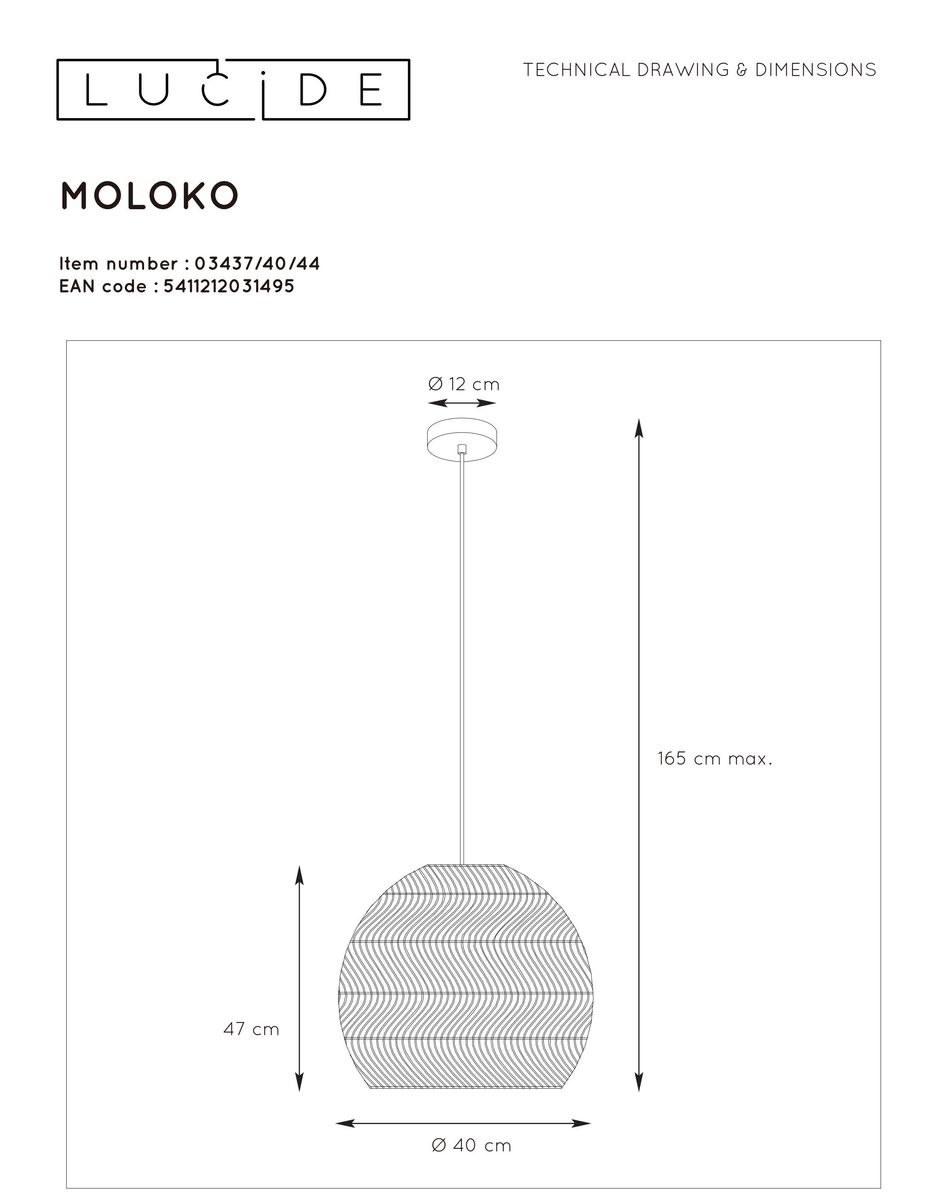 Подвесной светильник Lucide Moloko 03437/40/44