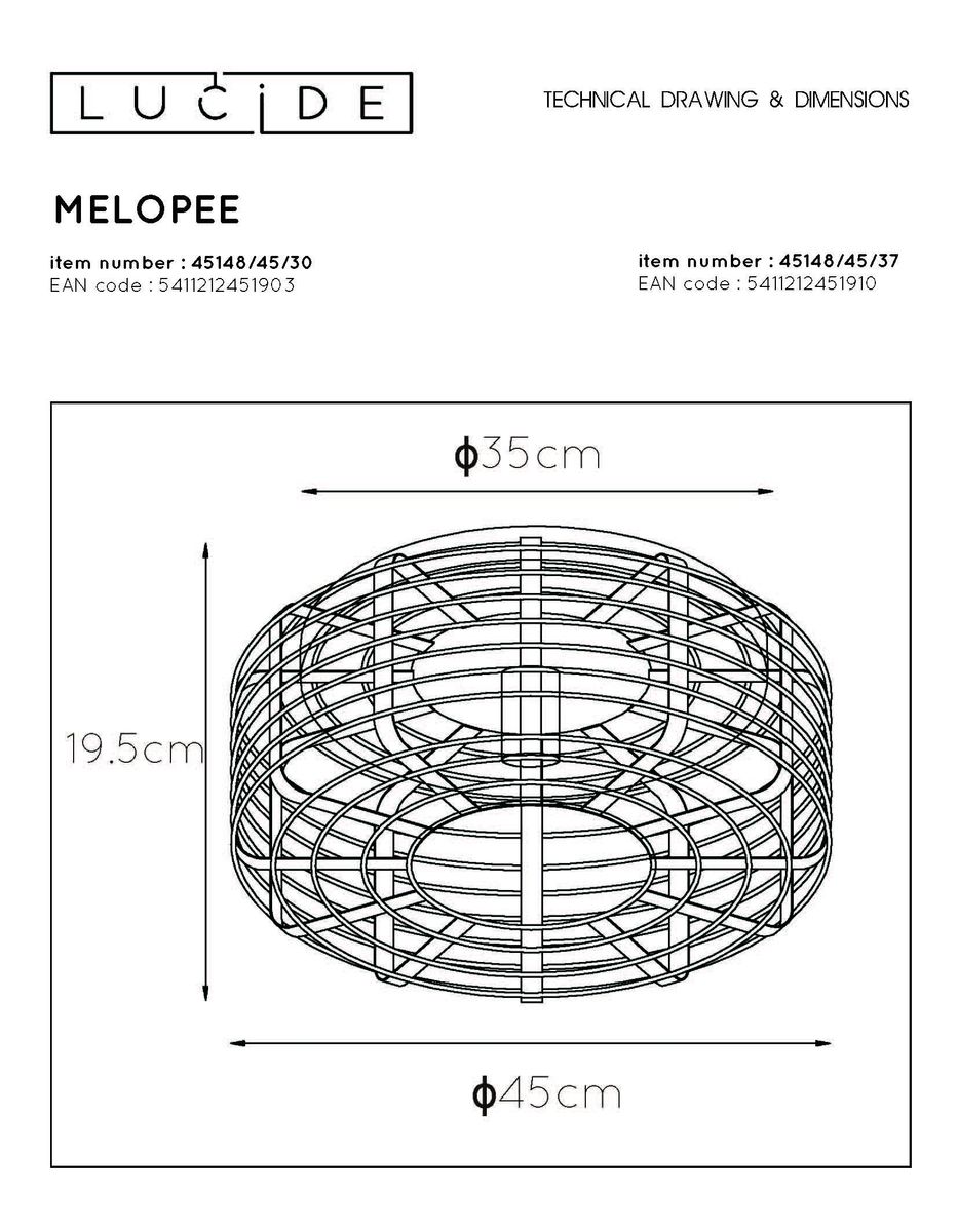 Потолочный светильник Lucide Melopee 45148/45/30