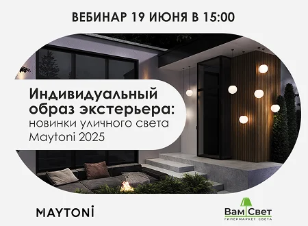 Приглашаем на бесплатный вебинар, посвященный новинкам архитектурного и ландшафтного света от легендарного бренда Maytoni.